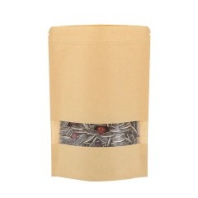 Food-grade kraft stand-up pouches with reclosable zip, optional window, and high barrier structure. Cost-effective vs. plastic/glass for the same barrier, recycle-friendly paper layer.