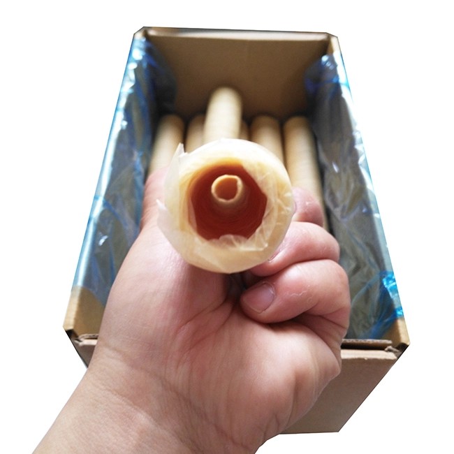 KTPACK natural-colour edible collagen casings deliver consistent diameter control for even frying and reliable smoking results. Designed for industrial stuffing speed with dependable clipping and smooth linking; compatible with smoked and wind-dry processes.